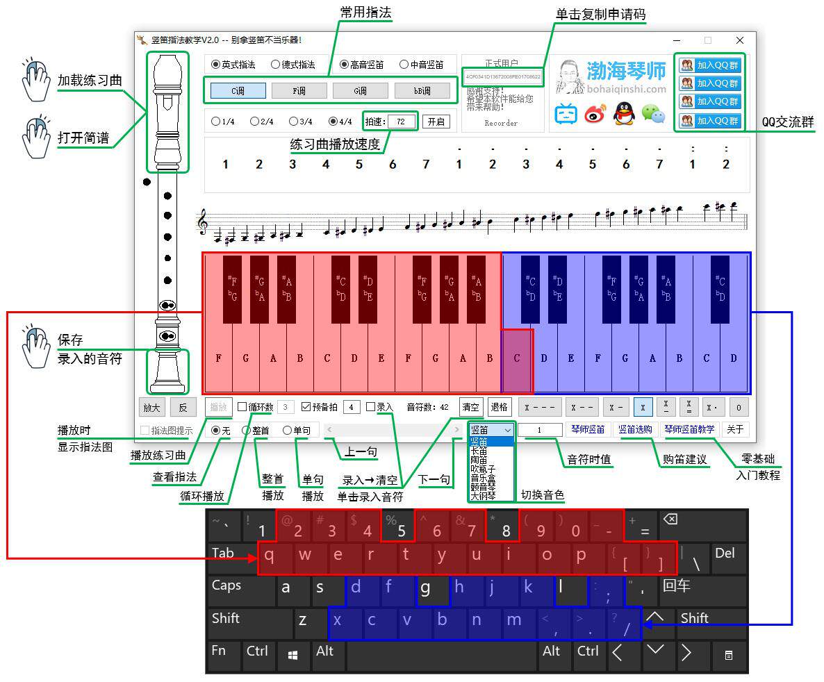 8孔竖笛教学软件|成人儿童学生乐器初学入门指法自学教程练习曲谱