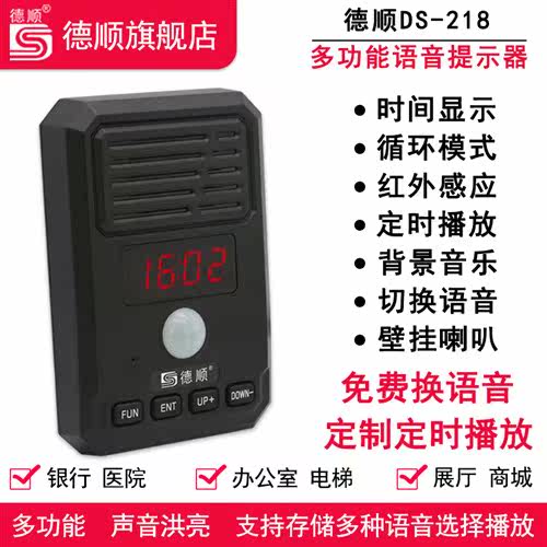 德顺218多功能感应语音提示器 背景音乐红外循环定时播报电梯展览热门设计联盟服务商