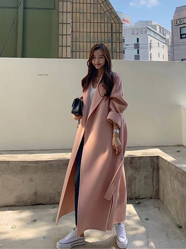 大连东越服饰21秋冬新款双面羊绒大衣女中长赫本风粉色毛呢外套热门设计联盟服务商