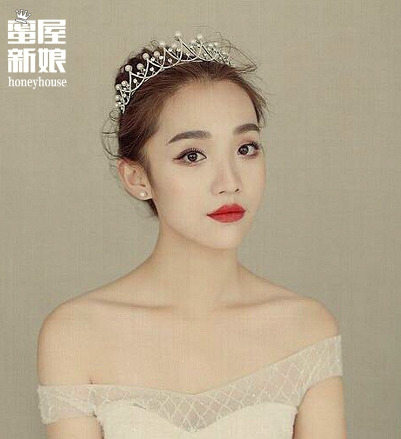 包邮韩式新娘皇冠头饰珍珠三件套装结婚礼服发饰项链耳环婚纱饰品热门设计联盟服务商