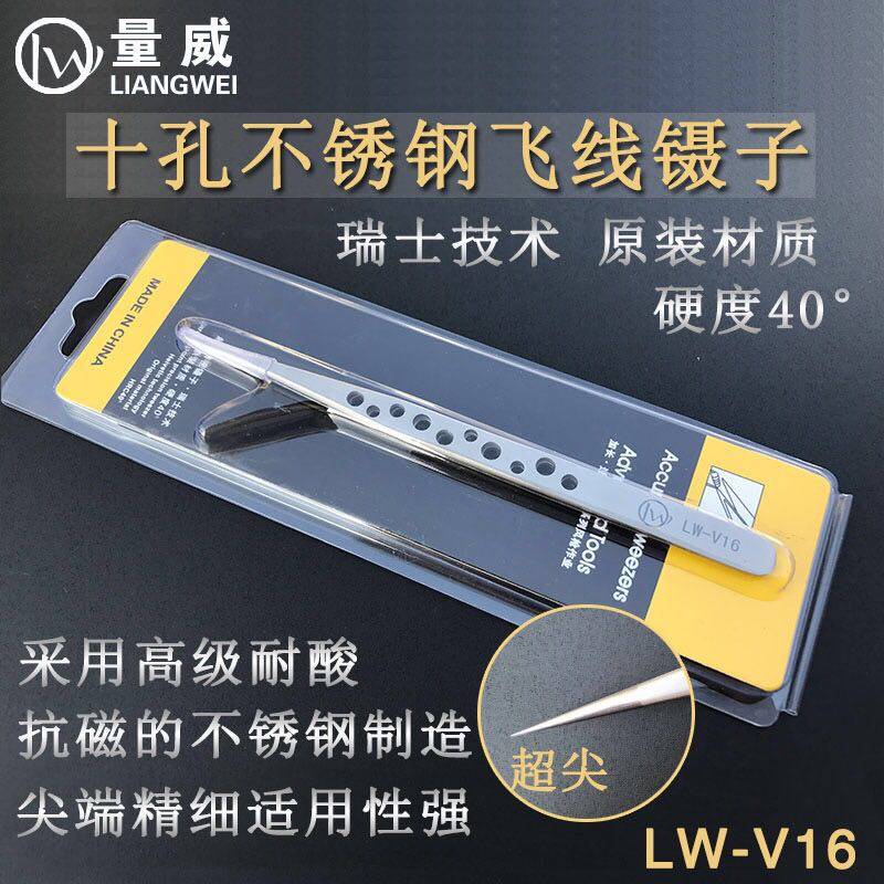 量威十孔防滑手柄镊子 不锈钢直弯尖头飞线专用手机维修工具通用热门设计联盟服务商