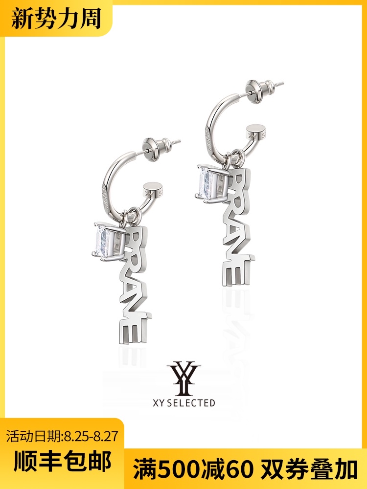 xyselected原创设计brave镶嵌宝石字母个性时尚耳环潮刘雨昕同款热门设计联盟服务商
