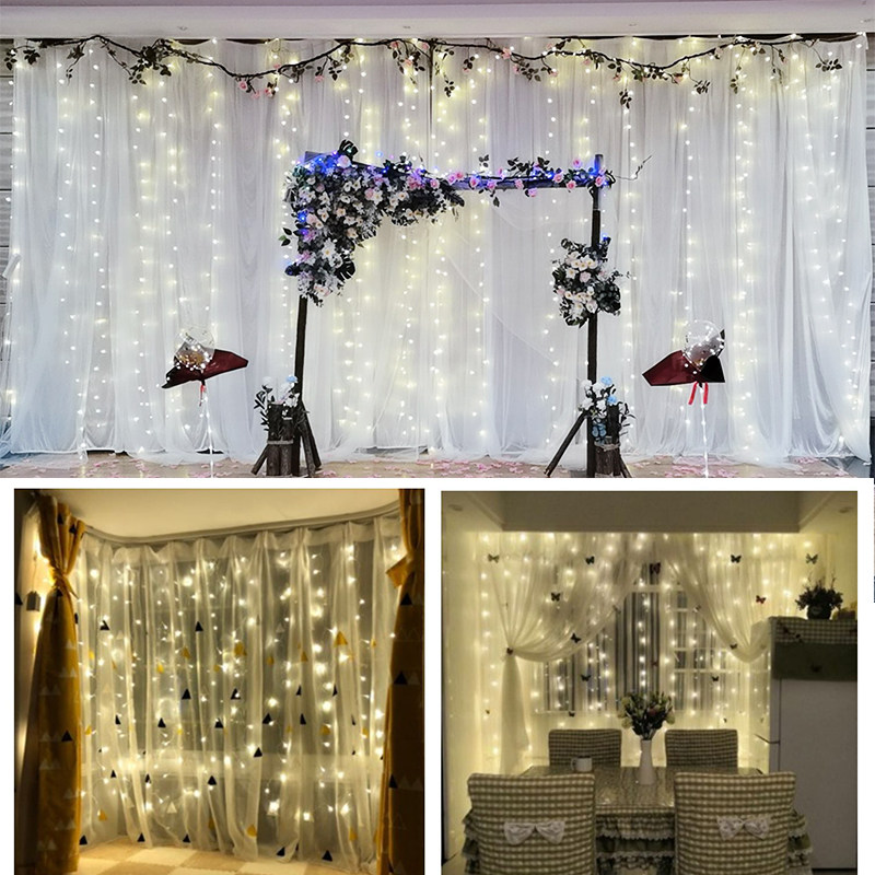 卧室窗帘飘窗装饰铜线灯瀑布灯冰条灯求婚浪漫背景装饰灯串满天。热门设计联盟服务商