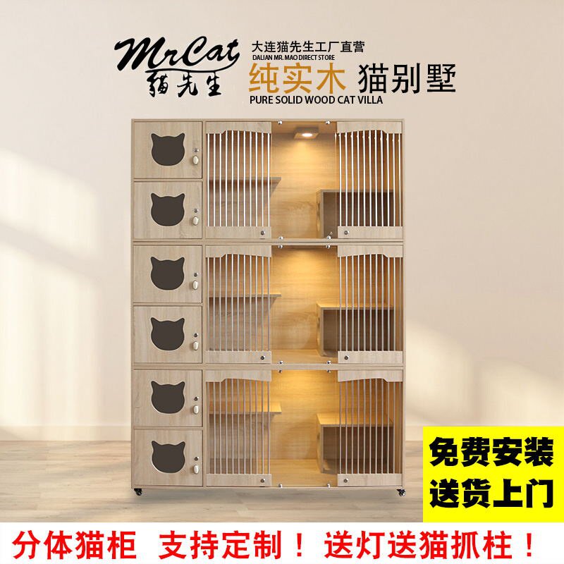 实木猫柜猫别墅猫屋猫舍展示柜繁育柜繁育笼家用猫笼子可定制。热门设计联盟服务商
