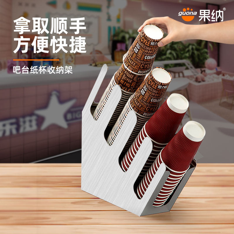 餐饮店不锈钢纸杯架奶茶咖啡厅一次性G取分杯器吸管吧台收纳盒商热门设计联盟服务商