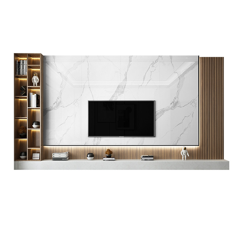 轻奢风岩板大板实木柜装饰客C厅瓷砖大理石材悬空影视。热门设计联盟服务商