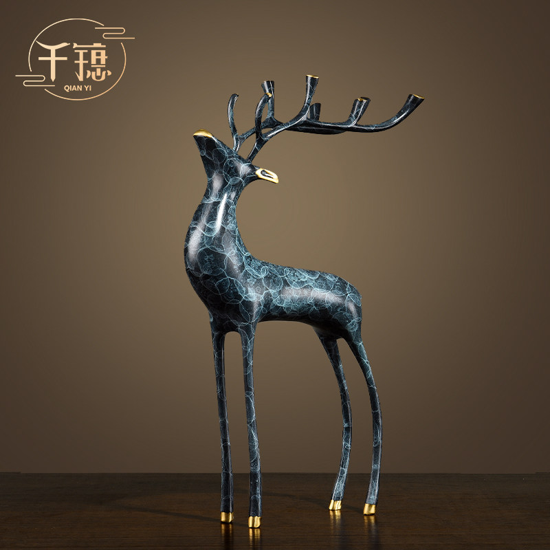 纯铜招财鹿摆件客厅电视柜酒柜玄关家居饰品现代简约X装饰新居礼热门设计联盟服务商