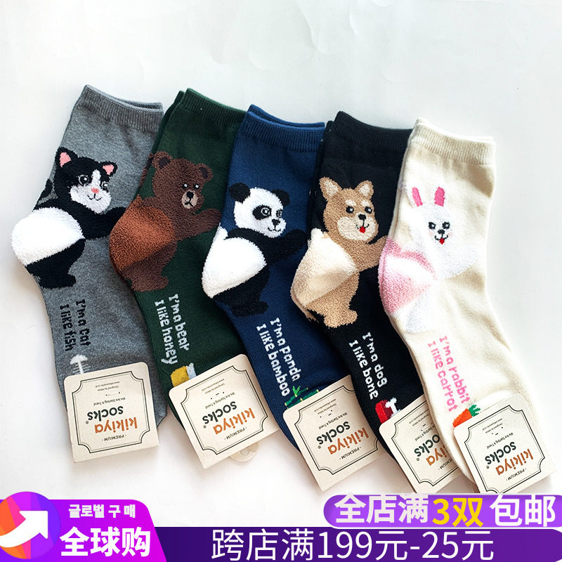 韩国东大门袜子女植绒可爱卡通动物中筒袜秋冬少女甜美袜子长筒袜热门设计联盟服务商