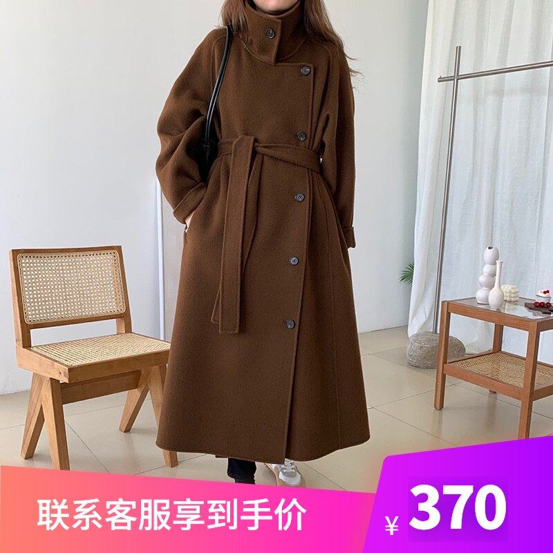 2021秋冬新款洋气小姐姐手缝双面羊绒大衣女中长款设计感羊毛外套热门设计联盟服务商
