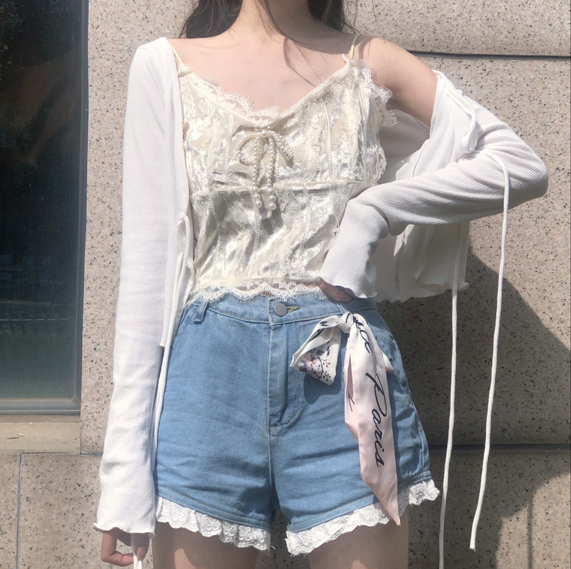 白菜少女伊莉雅JK 蕾丝吊带背心女内搭纯色蕾丝花边设计感上衣D1热门设计联盟服务商