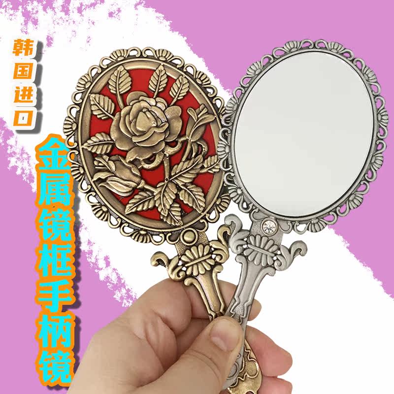 包邮韩国进口玫瑰随身携带补妆镜铜镜手持手柄镜美容院会所化妆镜热门设计联盟服务商