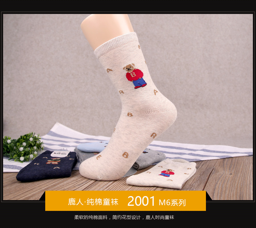 正品鹿人厚棉儿童棉袜子秋冬厚款儿童袜子10-12岁5双装2001热门设计联盟服务商