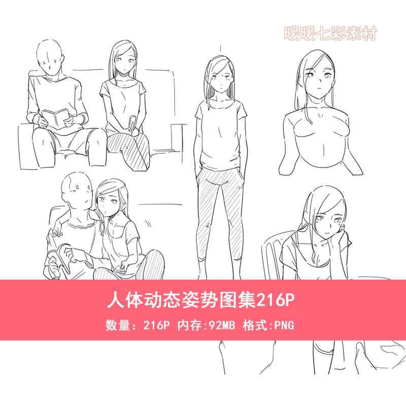 漫画人体动态姿势线稿图集216P 速写人物pose 临摹参考素材A024热门设计联盟服务商
